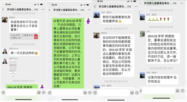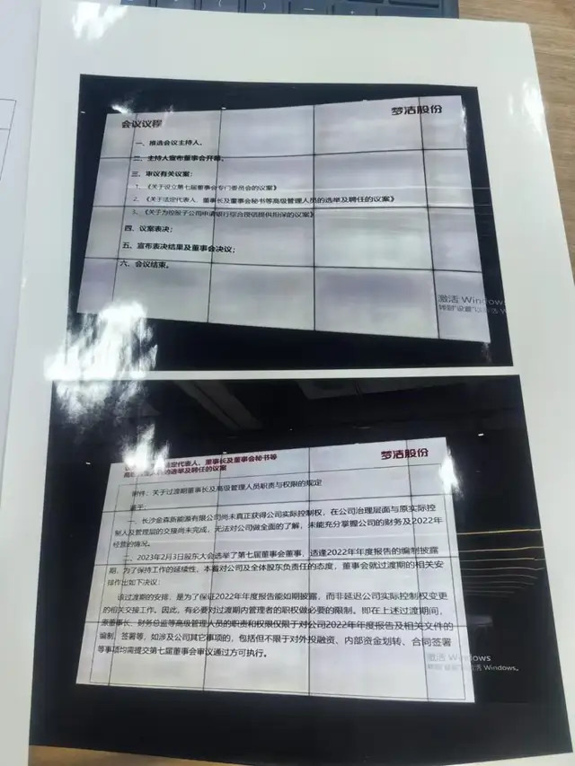 4月20日,第七届董事会第一次会议的议案及现场投影照片都是按照上述内容显示,但是会后董秘李军在给董事签署的决议上,删去了议案中过渡期时间安排和对管理层的限制性条款。陈洁及时任董事刘彦茗、罗庚宝提出异议,要求补充议案全部内容再签字,但董秘李军将三位董事的投票视为弃权并改变决议公告。
